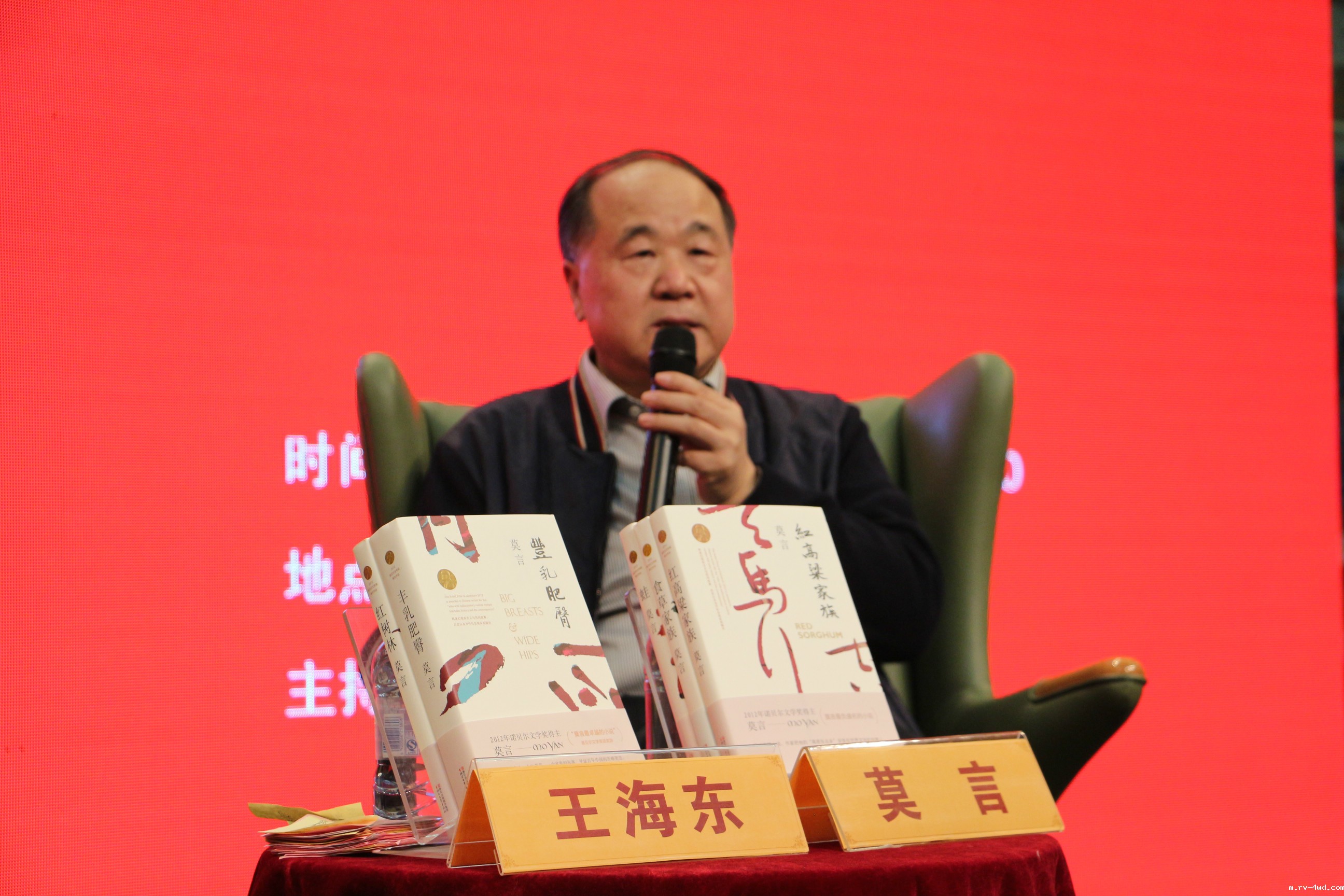莫言认为,悲凉和狂欢是他小说的调门,他认为,中国人狂欢的精神一点都不亚于西方人。活动当日,恰逢“双十一购物节”,莫言笑称,“双十一也是一种狂欢,疯狂地购买。昨天,我遇到一个小女孩,我问她,‘双十一’能买到男朋友吗?她说不能。但‘双十一’却告诉我‘一机在手,购买全球’。这种狂欢状态在过去无法想象,十年前觉得是胡说八道,现在看来很多胡思乱想都成为了现实。我们的生活都在以狂欢的状态发展,这让我感到一种忧虑——‘我们往外什么都看不清,他人看我们却清清楚楚。’”