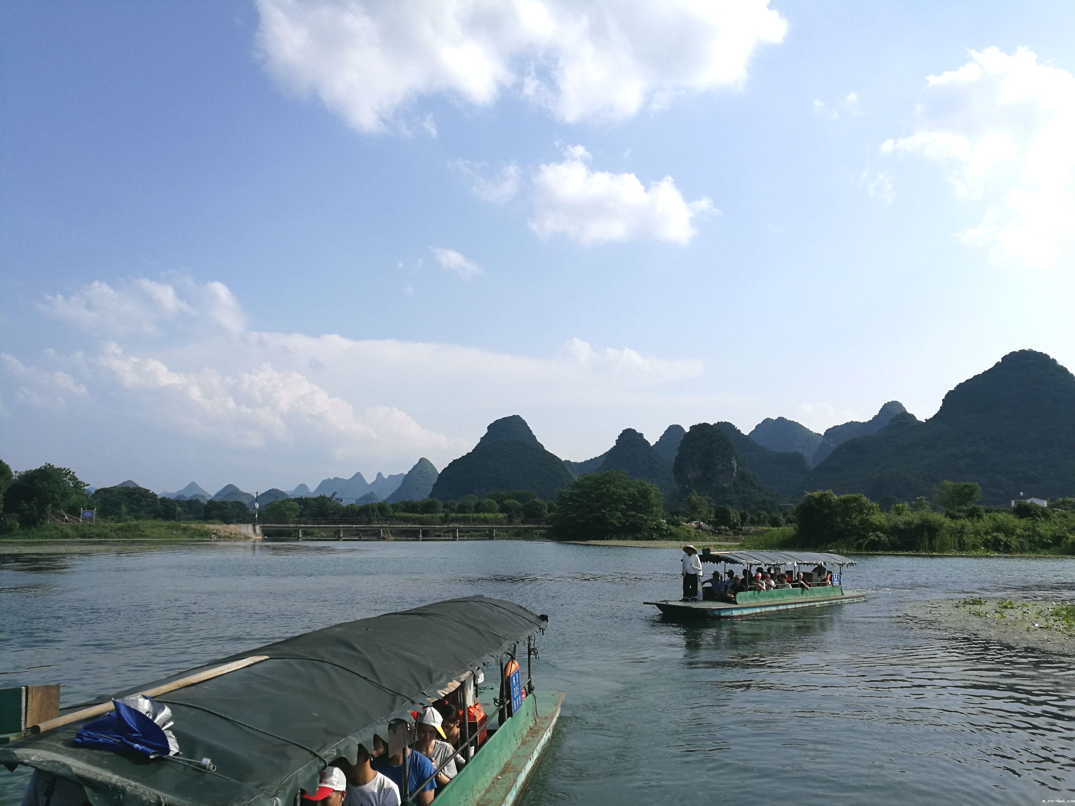“桂林山水甲天下、阳朔山水甲桂林”。在兴坪古镇午餐后,大家便迫不及待的前往漓江领略名动天下的“桂林山水”。踏上漓江畔,大家纷纷拿出20元人民币与著名的“二十元人民币”合影留念。“漓江的水真静啊,静得让你感觉不到它在流动;漓江的水真清啊,清得可以看见江底的沙石;漓江的水真绿啊,绿得仿佛那是一块无瑕的翡翠。”不错的,阳朔的山水无论怎么看都是美的。我们乘船畅游漓江,两岸青山相对出,仿佛人在画中游。在这里除了九马画壁,我们还看到了非常有名的鱼鹰——鸬鹚。大家在船头拍照,在水光山色间留下难忘的纪念。