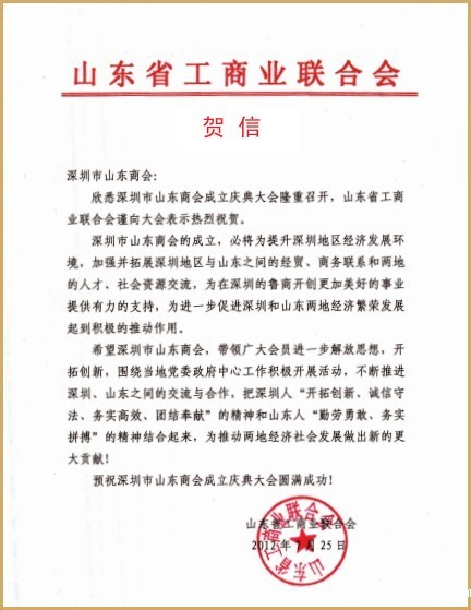 山东省工商业联合会贺信