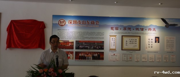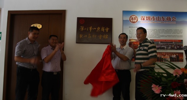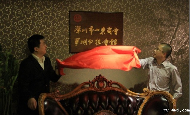 常务理事车言瑞与山东老家龙岗分店店长、商会南联会馆馆长于雪肖为会馆揭牌