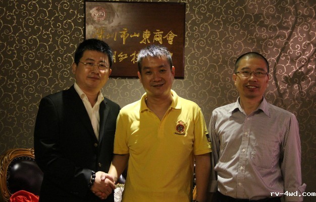 常务理事车言瑞、副秘书长王凌鸿与山东老家龙岗分店店长、会馆馆长于雪肖合影