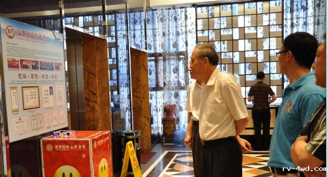 副会长孔凡鹏、明东和常务理事、会馆馆长、深圳市博亿酒业有限公司总经理苏宁及副秘书长徐丽、常务理事王庆举等会员合影