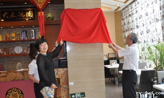 秘书长伍柳江、副秘书长陈振永与理事和会馆馆长、深圳市鑫辉餐饮服务管理有限公司总经理王传启、总经理助理许守景为会馆揭牌