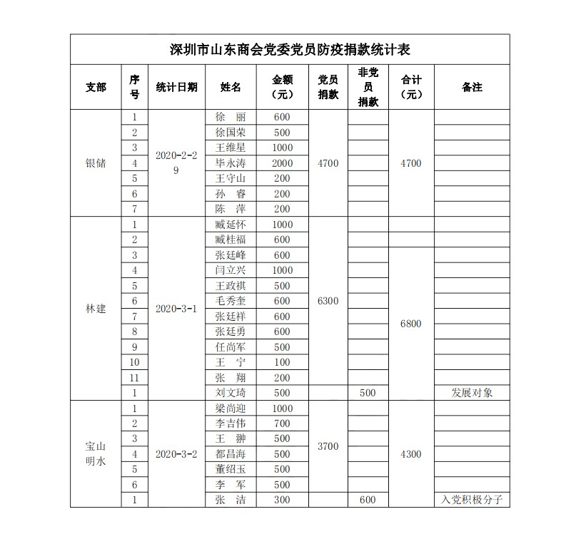 中共中央组织部发出号召后,习近平总书记为支持新冠肺炎疫情防控工作带头捐款。“疫情就是命令,防控就是责任”。18新利党委在深圳市社会组织党委的部署安排下认真做好了党员自愿捐款的接收工作。党员同志们自觉自愿、积极响应,在短短几天内,108名党员共捐款项35716元(另有8名非党员也执意捐款2500元)。3月6日,商会党委已将党员捐助的35716元款项如数上缴到市社会组织党委(其他非党员的捐款,商会党委将根据疫情情况捐助到其他需要捐助的地方)。