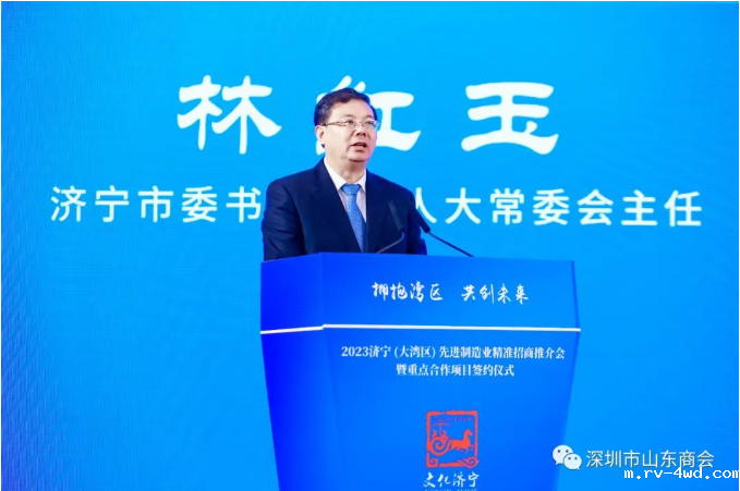 林红玉书记在致辞中表示,近年来,济宁深入学习贯彻习近平总书记视察山东、视察济宁的重要讲话、重要指示批示精神,锚定“走在前、开新局”,按照山东省委、省政府加快建设制造业强省的部署要求,全面落实黄河重大国家战略,聚焦建设绿色低碳高质量发展先行区,充分发挥产业体系完备、区位交通优越等“九大优势”,大力实施制造强市、创新驱动等“九大战略”,全力跨入全省发展第一方阵,建设全国一流文化名市,打造美丽幸福典范城市。济宁市连续三年召开全市产业高质量发展大会和人才科技创新发展大会,让企业家“站C位、当主角”,全市上下“大抓创新、大抓产业”的氛围越来越浓。宁德时代新能源电池产业基地、日本小松全球智能制造产业基地、山能智慧制造产业园等一批过百亿的重大产业项目落地建设,全力打造国家级制造业高质量发展试验区中心城市,这为广大有见识、有情怀、有实力的企业家,提供了广阔的创业舞台和发展空间。今天的签约,既是合作共赢的新开端,也是与各位企业家朋友在更广领域、更深层次合作的新起点。真诚希望,大家到济宁抢占先机、尽享红利;我们热切期盼,与大家一起携手奋进、共创未来;我们郑重承诺,一定以最大的诚意、最好的服务,为各位企业家提供最坚强的政策支持、最完备的要素保障、最优质的营商环境,让企业轻装上阵、安心发展。