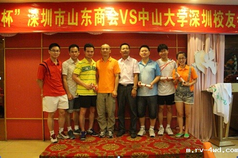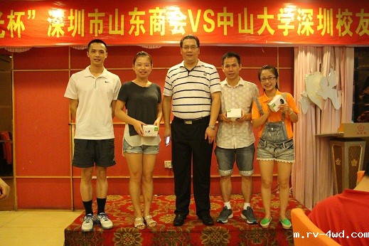 常务理事、鲁光电子董事长朱礼贵代表商会向获得冠军的中山大学校友会羽毛球队颁奖