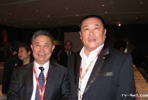 理事王传启高兴的拿着产品与商家现场对接并订单采购