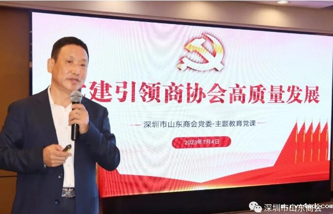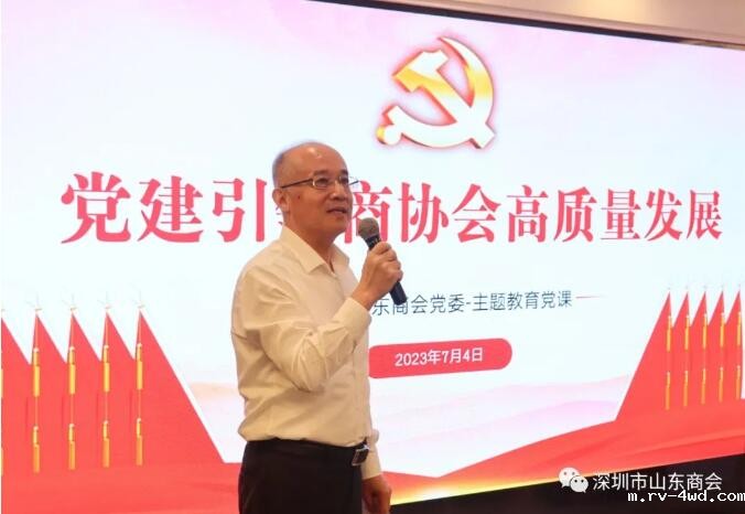 为深入开展学习贯彻习近平新时代中国特色社会主义思想主题教育,进一步强化商会党组织政治核心作用和政治引领功能,切实加强党对基层商会组织的指导、引导和服务,不断创新国际新利娱乐网官网工作。2023年7月4日下午,18新利党委特别邀请深圳市工商联党组成员、专职副主席、市总商会副会长冯德崇同志到山东大厦为党员同志作《党建引领商协会高质量发展》主题教育党课。