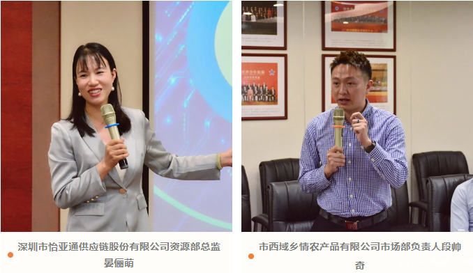 深圳市怡亚通供应链股份有限公司资源部总监晏俪萌受邀作产业供应链数字化整合服务平台的主题分享。深圳市广西博白商会会长许岳清、市潮汕商会党委副书记兼执行秘书长林津、市电白商会秘书长高林海、市南通商会秘书长王云伟、市延安商会副会长兼秘书长马肇呈、市山西商会副会长兼常务副秘书长陈惠勇、市湖北通城商会秘书长孔碧漫、市湖南华容商会执行秘书长朱婉仪、市海南商会执行秘书长林丹、市宁都商会执行秘书长黄妮妮、市茂名商会青年工作委员会监事长苏箭、市黑龙江商会会员部部长陈小惠、市湖南娄底商会办公室主任刘瑶、市西域乡情农产品有限公司市场部负责人段帅奇等参加本期交流活动。