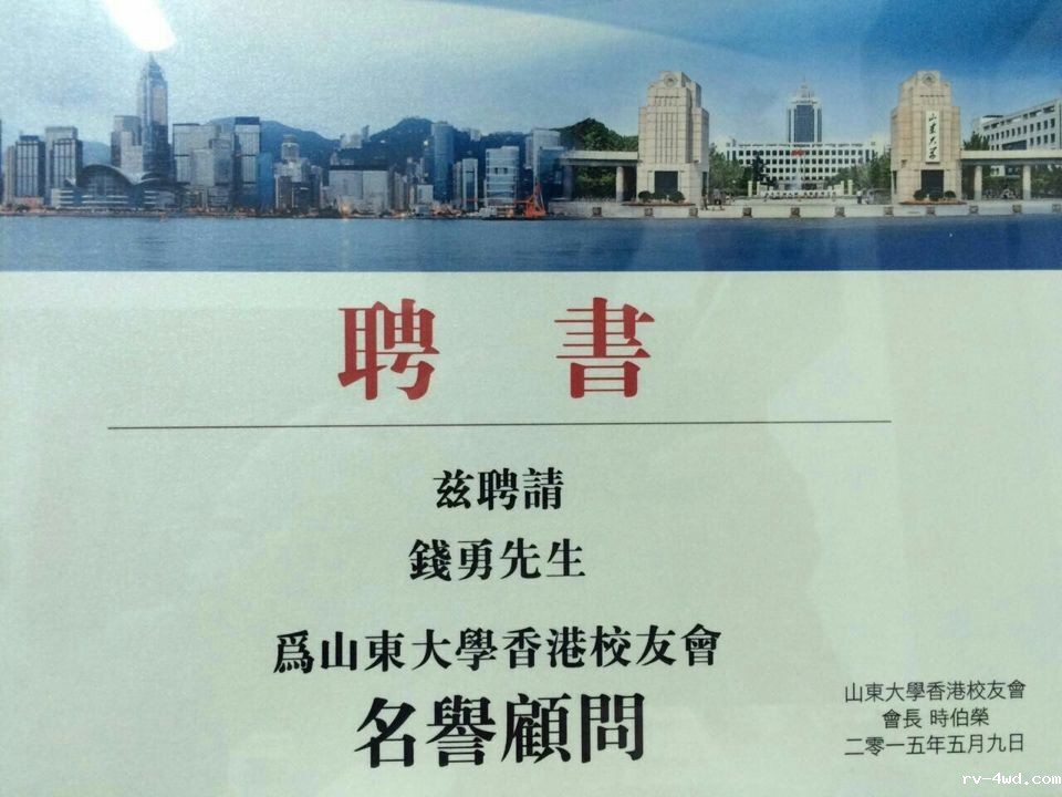 5月9日下午,山东大学校友会10周年庆典在香港尖沙嘴隆堡丽景酒店举行。来自香港各界人士200多人参加庆典。香港特区行政长官梁振英先生到场祝贺并致辞发言,特首与现场嘉宾合影留念。在各界人士见证下,山东大学校长张荣先生和山东大学香港校友会会长时伯荣教授向钱勇先生颁发荣誉顾问以彰许钱勇先生对联系学校校友服务于香港社会做出的贡献。