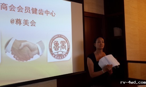 尊美会总经理邓红琳女士介绍商会会员健齿中心主持揭牌仪式暨第一次沙龙