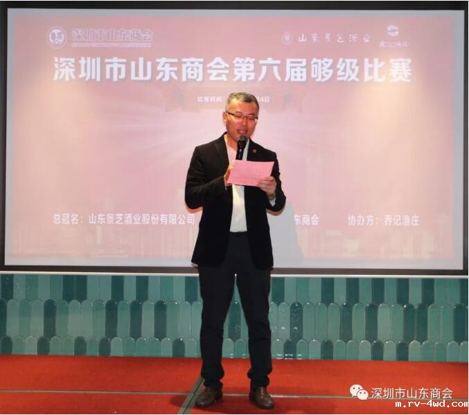 深圳乔记渔庄董事长刘桂森代表赞助商致辞,他表示,非常高兴能和山东商会合作,共同为在深山东乡贤呈现一场精彩的、充满趣味的娱乐赛事,此次合作非常成功,大家玩的都很开心,在娱乐的同时收获了友谊又交流了业务,期待下次与山东商会合作,为大家呈现更多精彩的活动。