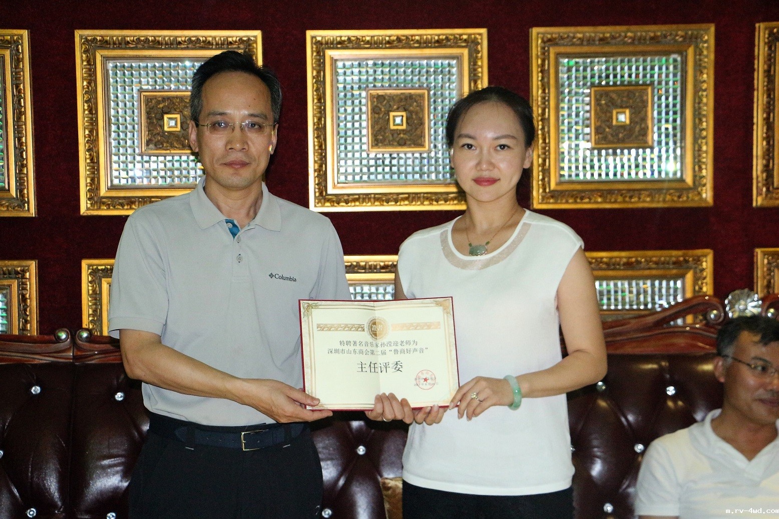 参赛者们轮番上阵,一展歌喉,将音乐的魅力和蓬勃的朝气展现得淋漓尽致,比赛过程中气氛紧张而激烈,现场高潮迭起、掌声不断。“滚滚长江东逝水”,“我想要怒放的生命”,“还想再活五百年”,随着熟悉的旋律在耳边响起,一首首大气奔放的歌曲唱出了山东人的热情和豪迈。随后《父亲》、《冰雨》、《只想一生跟你走》等经典老歌在选手的真情投入中唱出了大家对亲人的思念,对过往美好的回忆,触动了大家内心深处最柔软的情感。 经过两轮角逐,分别决选出前八名和前三名,通过前三名最后一轮清唱,常务理事相润一首怀念家乡的老歌《家住临沂》获得季军,会员宋磊一首嘹亮的《草原上升起不落的太阳》获得亚军,赵旭一首动人的《一路上有你》获得冠军,最终结束了本场好声音的巅峰对决。赛后,王维秘书长代表商会为孙滢迎老师颁发了评委会主席的荣誉证书。