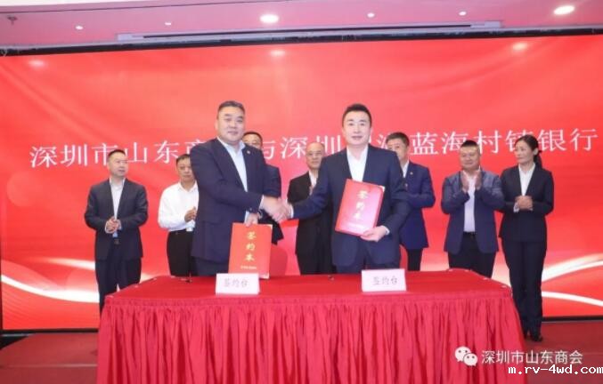 揭牌仪式上,我会执行会长兼秘书长梁庆伟代表商会与罗湖蓝海村镇银行行长房涛签署了战略合作协议。我会会长王立新,执行会长张焕祥、臧延怀、王传启,副会长兼金融委员会主任张大卫,罗湖蓝海村镇银行高管李文庆、张静等上台见证了签约仪式。