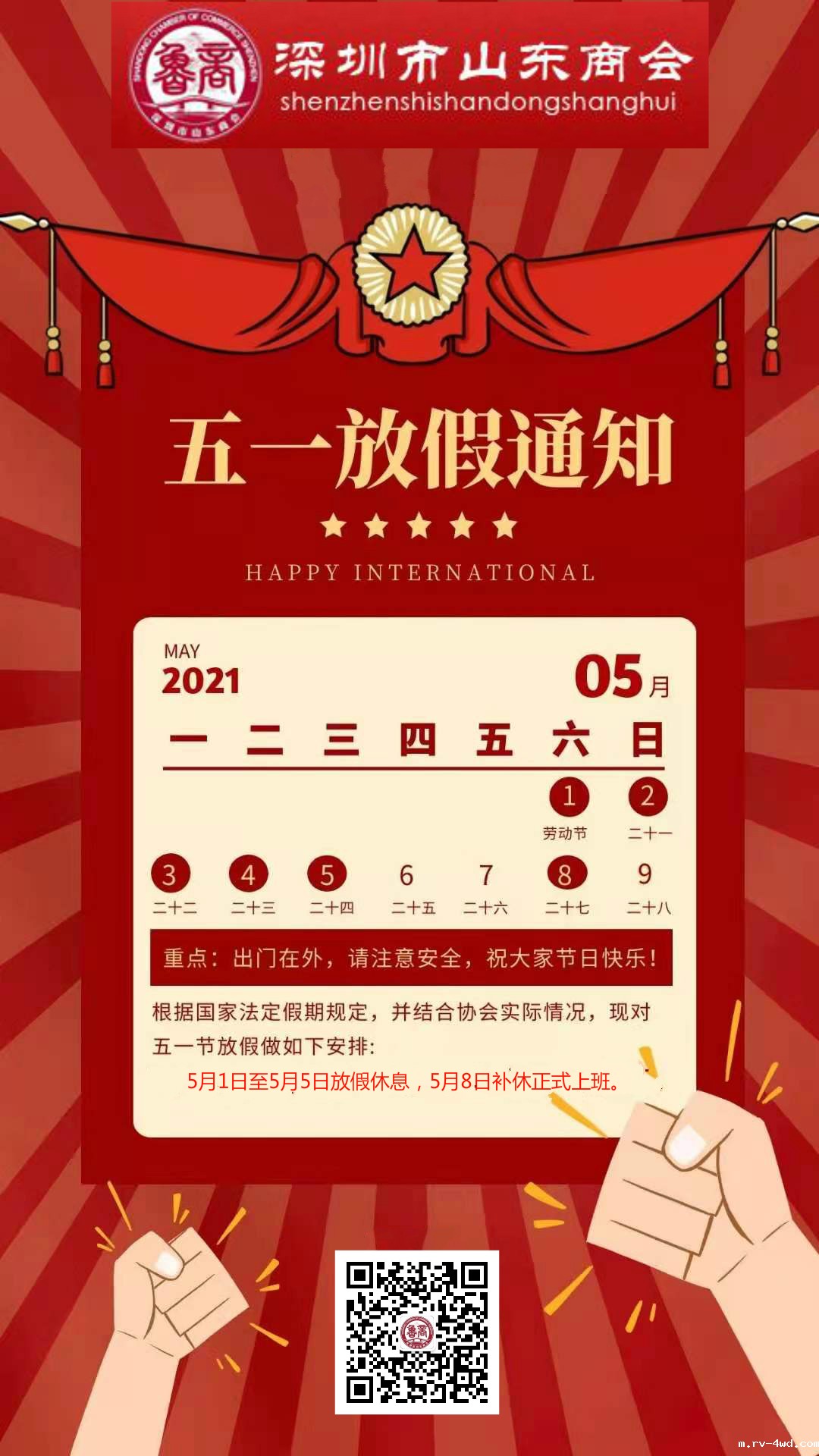 5月1日(星期六)至5月5日(星期三)放假休息,5月8日(星期六)正常上班。