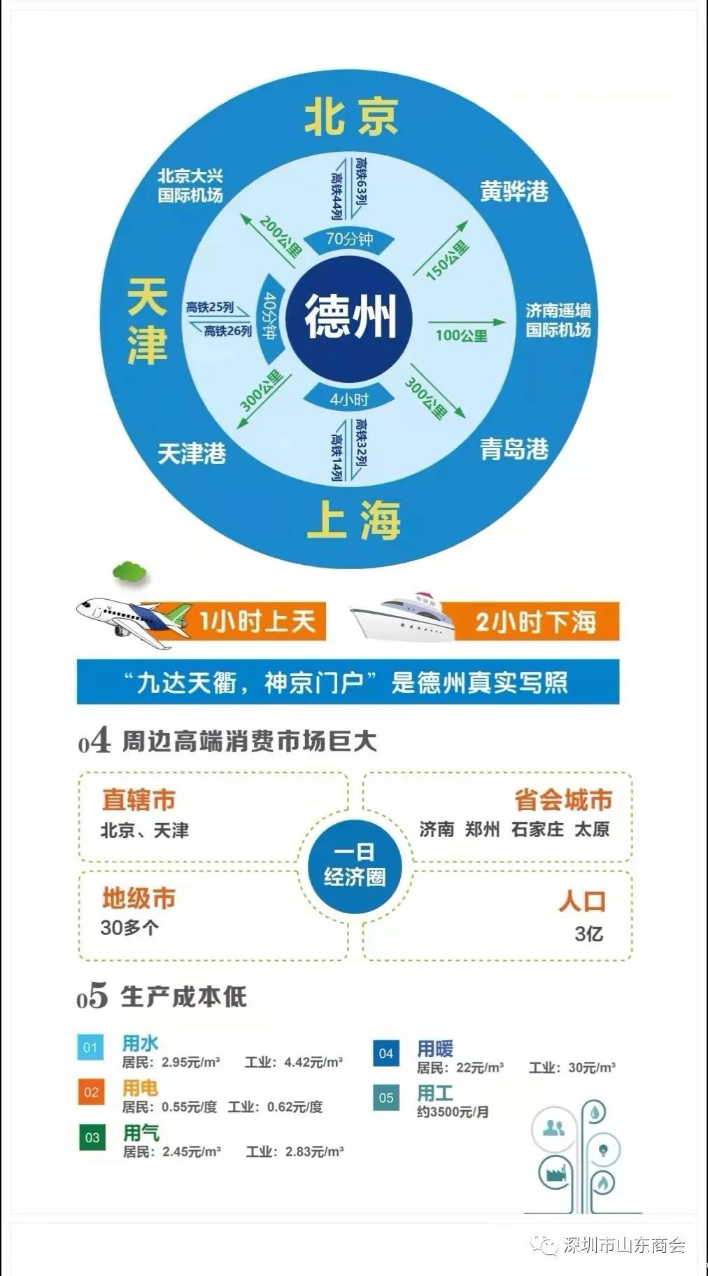 (二)区位优越。自古享有“九达天衢、神京门户”美誉,京杭大运河穿境而过,明清时期曾是全国33个工商重镇之一。如今,500公里内涵盖人口3亿,市场潜力巨大;高速公路、铁路形成“六纵六横”交通网,通达22个省会在内的200多个城市,70分钟到北京、4小时到上海,距济南遥墙国际机场100公里,北京大兴国际机场200公里,河北黄骅港150公里,天津港、青岛港300公里。