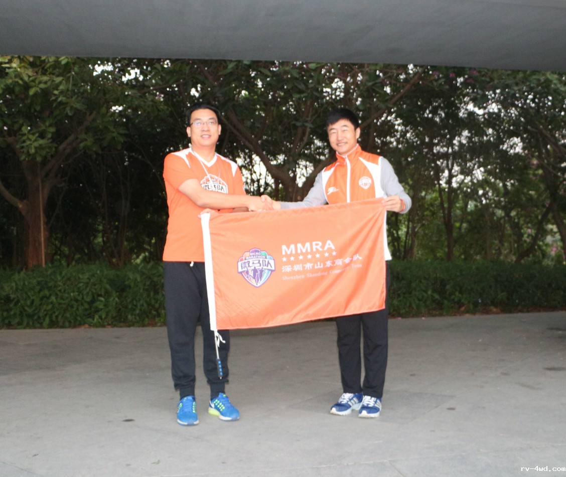 微马跑步协会霍文峰秘书长为商会微马队李井辉队长授旗