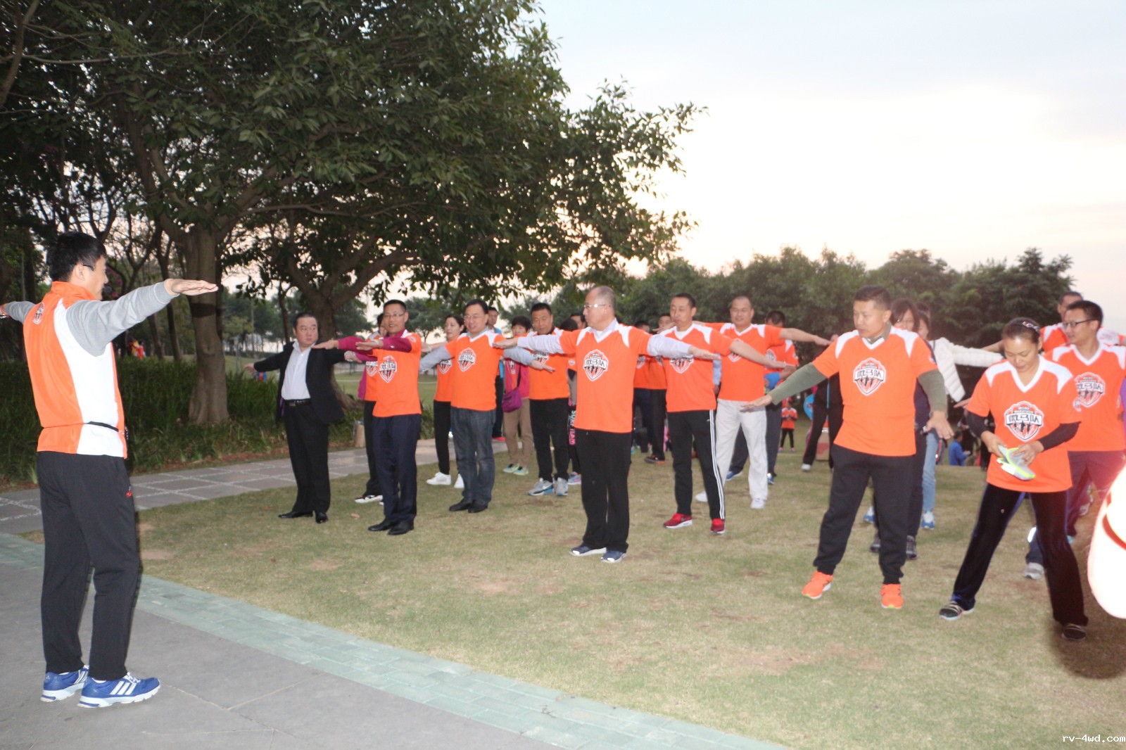 微马协会文峰总队长带领大家做跑步前准备