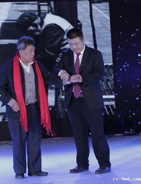 商会副会长、董事长侯红亮含泪把体现关爱和健康的第一台红表送给了自己唯一的老父亲