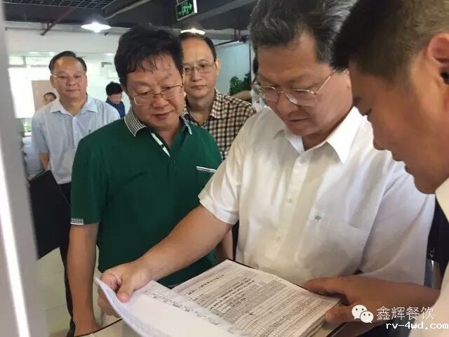 在鑫辉餐饮配餐中心董事长向各位领导们讲解了全自动化设备的整个生产线食品操作过程及食品安全管理操作标准,对此,领导们给予了极大的赞许。期间,陈副市长对公司食品台账认真查看,并对我鑫辉餐饮公司对新食品安全法的执行与食品安全的管控工作核实给予了高度的评价。