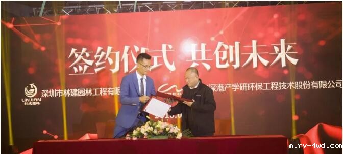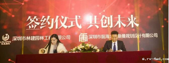 晚会上,在领导的见证和关注下,林建园林与中国恒天集团,深港环保,大唐斯曼设计规划等签订了战略合作协议。深圳市领导送林建园林书法作品一幅表示祝贺。