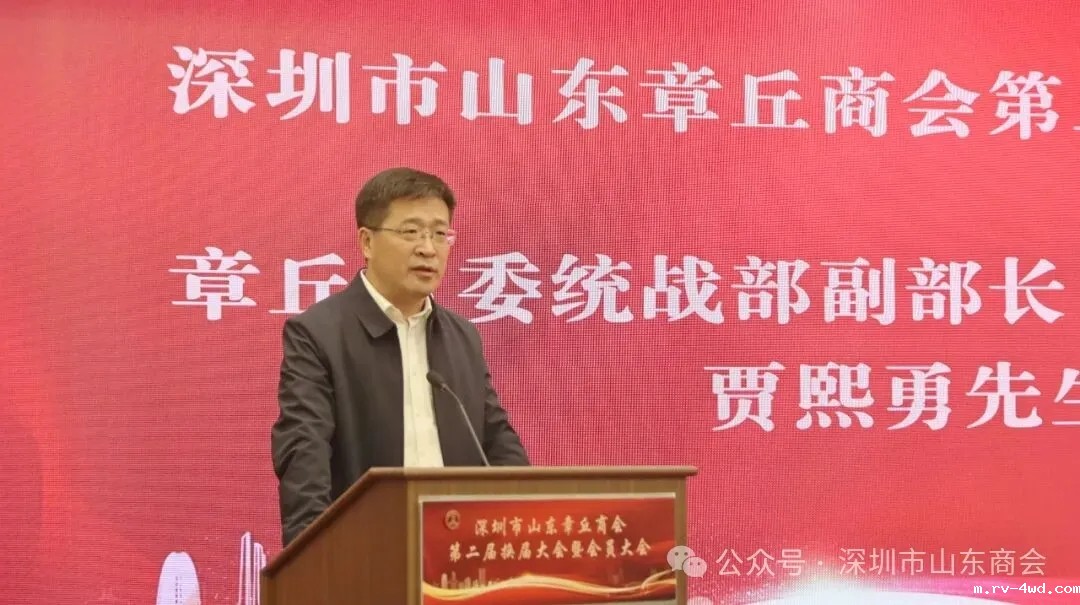 章丘区委统战部副部长、区工商联党组书记贾熙勇在讲话中,代表区委统战部、工商联向大会的顺利召开表示热烈的祝贺!他充分肯定了章丘商会自成立以来所做的工作,同时也为商会今后的发展提出了新的要求和殷切希望。他表示,区委统战部、工商联将一如既往地关心和支持深圳章丘商会的发展。积极为商会和会员企业提供服务,搭建平台,创造良好的发展环境。希望商会能够与工商联保持密切联系,加强沟通协作,共同推动非公有制经济健康发展和非公有制经济人士健康成长。