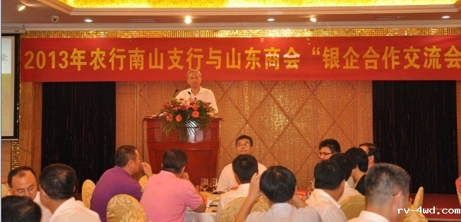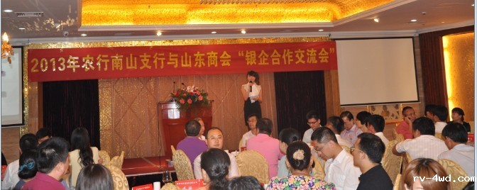 2013年6月14日晚,商会第五组、第六组、第八组与中国农业银行深圳南山支行在山东大厦二楼山东商会会馆联合举办“银企合作交流会”。出席会议的商会会长王维星与深圳市农业银行南山支行行长李俊启分别致辞,并表示本次银企合作交流活动促进了银行与企业家之间的交流,增进相互之间的了解。席间商会会员与农行代表交流融洽,参加活动会员们纷纷表示受益匪浅,希望今后能继续举办此类活动。副会长孔凡鹏、郭林槐、郭红菊、毕永涛及秘书长伍柳江、副秘书长王凌鸿、徐丽、陈文才、陈振永及秘书长助理杨利、李青、李娜、卢立建、扈炳燕、办公室主任徐国荣等约100多位深圳南山农行中层干部和商会五组、六组、八组会员出席了会议。