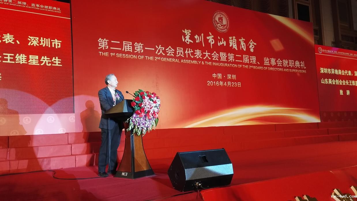 2016年4月23日,深圳市汕头商会第二届第一次会员代表大会暨第二届理、监事会就职典礼在深圳市五洲宾馆五洲厅隆重举行。出席大会的领导、嘉宾有汕头市领导谢泽生、郑通声,深圳市委统战部副部长马勇智,广东省原副省长许德立、省政协原副主席李统书、深圳市人大常委会原代主任庄礼祥等。我会创会会长王维星、会长王立新应邀和各异地商会代表与汕头商会会员等600多人出席会议。经选举,郑汉明当选为深圳市汕头商会第二届会员代表大会会长,吴振城当选为深圳市汕头商会第二届监事长。就职典礼隆重热烈,内容丰富多彩。汕头商会新当选的会长、监事长上台发表热情洋溢的就职演说。我会创会会长王维星先生应汕头商会邀请作为深圳市异地商会代表上台致辞。我会创会会长王维星先生代表商会首先向汕头商会荣誉当选的理、监事成员送上最热烈、最诚挚的祝福,并祝庆典取得圆满成功。