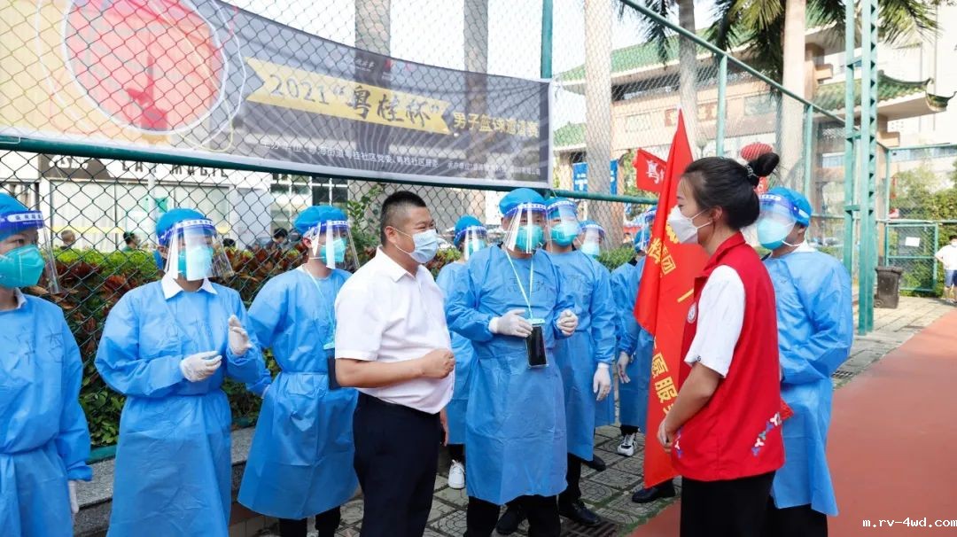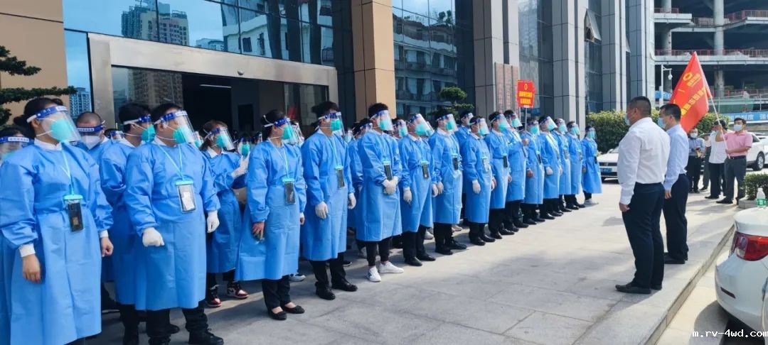 ▲鑫辉餐饮集团防疫志愿者服务队抵达粤海街道