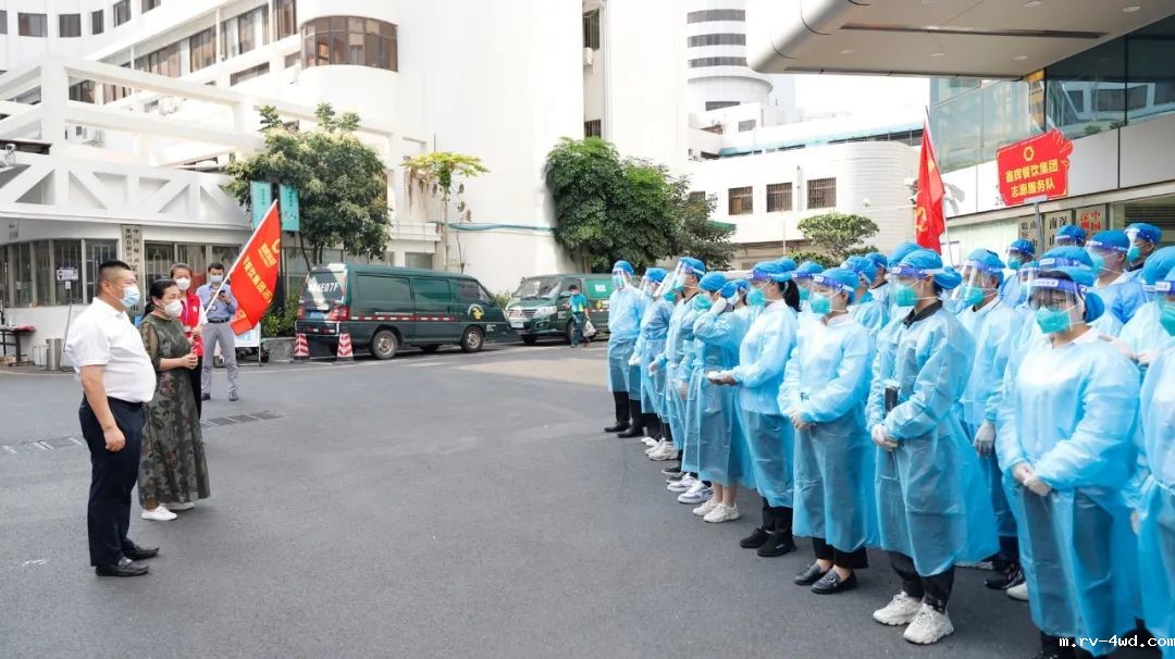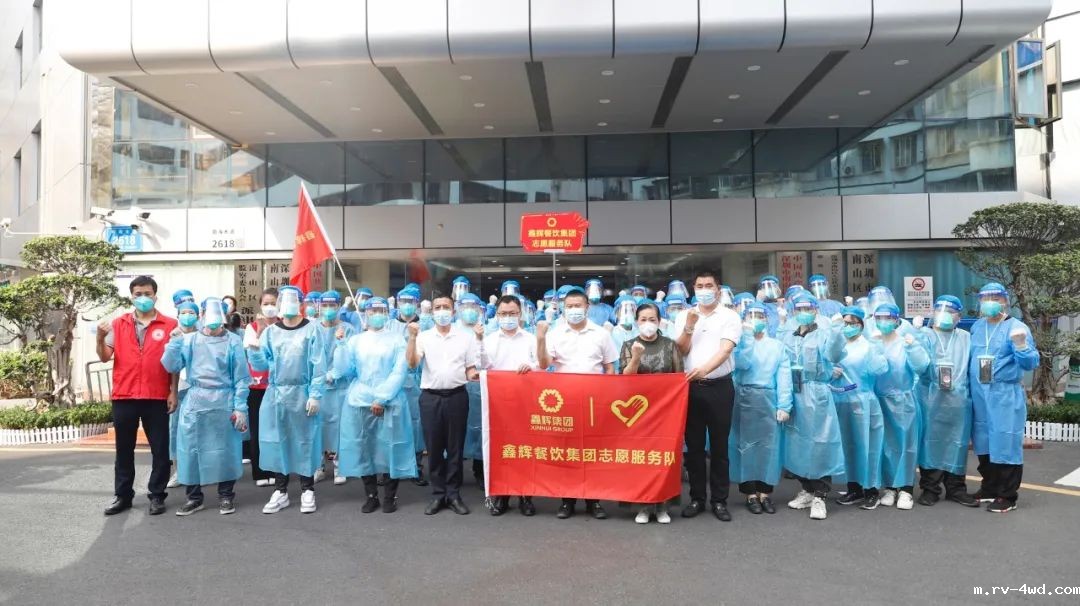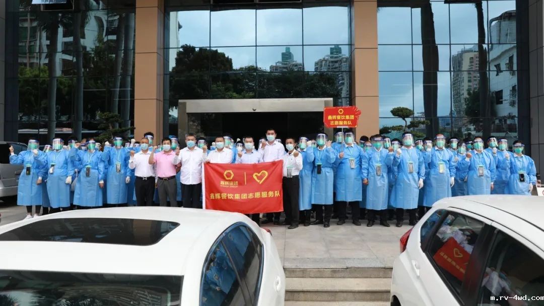 ▲鑫辉餐饮集团防疫志愿者服务队抵达南头街道