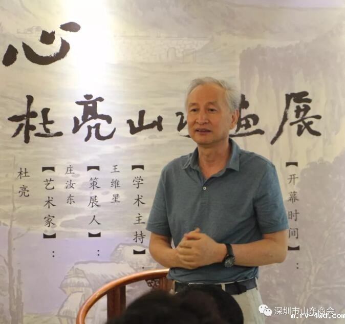 画展开幕式上,王维星院长讲述和亮先生相识于著名艺术理论家、山水画大家程大利先生的高研班上,并高度评价杜亮先生为人和蔼可亲,山水画作品自然和谐,不刻意修饰装扮,不拘泥传统敢于创新,勇于突破,于细雨润无声。