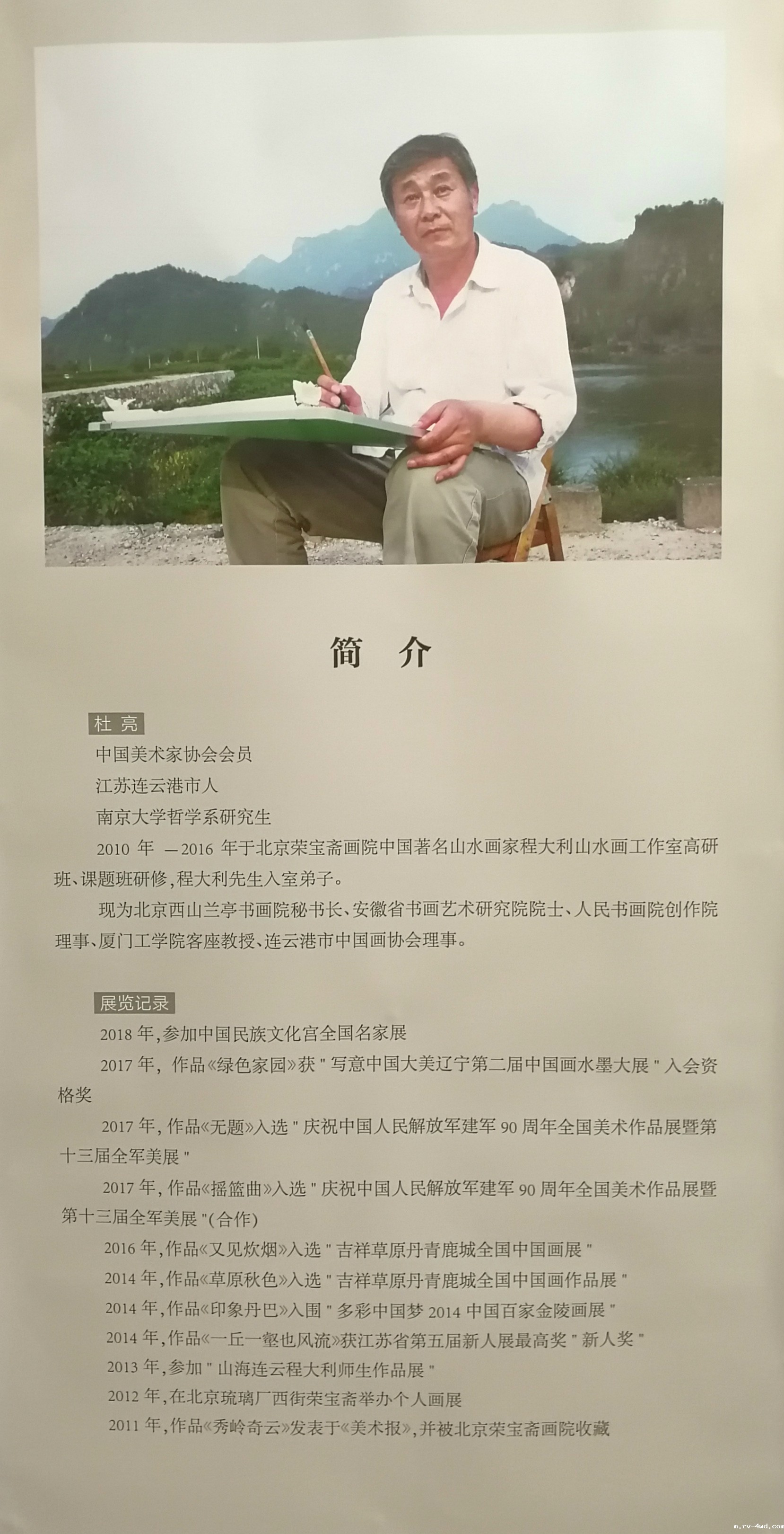 中国美术家协会会员,江苏连云港市人。南京大学哲学系研究生。2010年-2016年于北京荣宝斋画院中国著名山水画家程大利山水画工作室高研班、课题班研修,程大利先生入室弟子。现为北京西山兰亭书画院秘书长、安徽省书画艺术研究院院士、人民书画院创作院理事、厦门工学院客座教授、连云港市中国画协会理事。