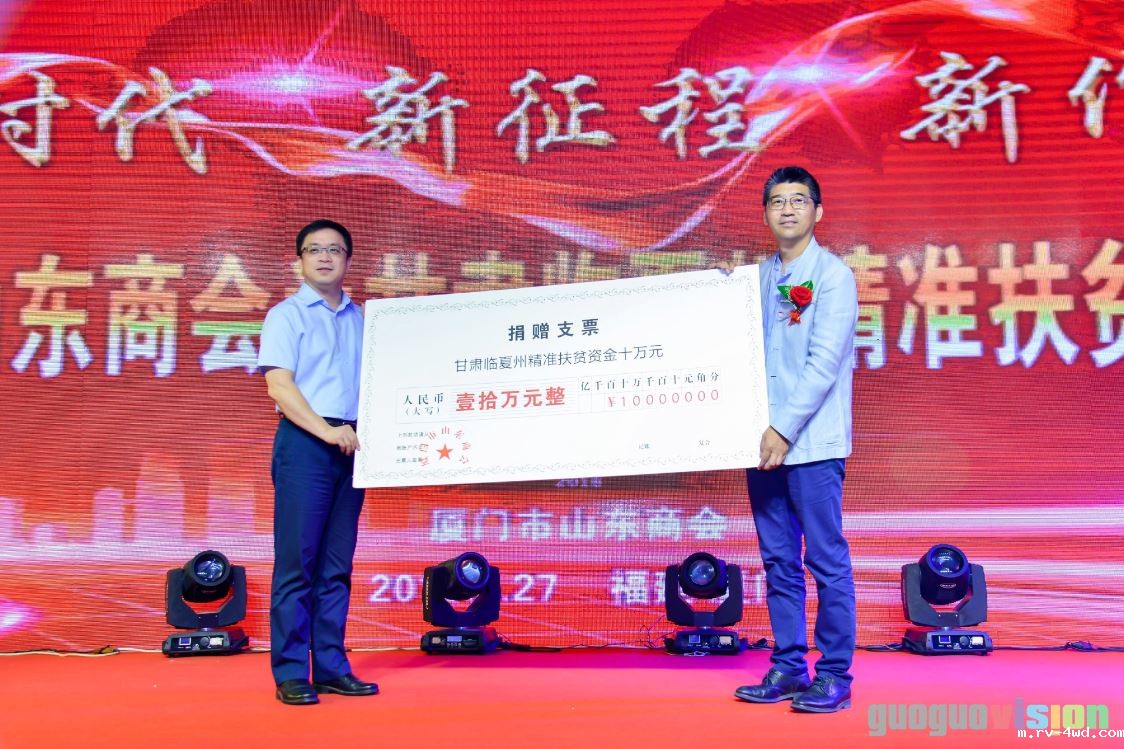 会议期间,厦门市山东商会还举行了公益捐助活动仪式,为厦门市对口帮扶的甘肃省临夏州扶贫济困善捐壹拾万元。
