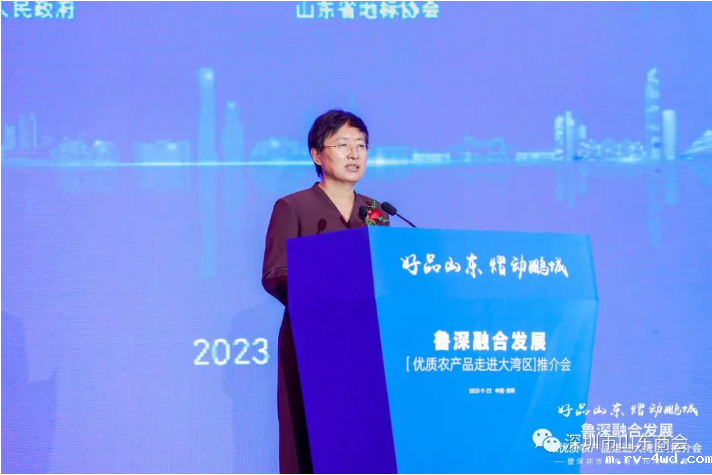 山东省人大常委会副主任,省工商联主席、省总商会会长王随莲在致辞中表示,推介会的举办将有助于进一步拓展山东省高质量发展新思路,有助于促进大湾区内的资源对接与共享,有助于加快“好品山东”走进大湾区、走出国门,进一步展示山东良好的形象和品牌,为山东家乡的乡村振兴和高质量发展作出贡献。