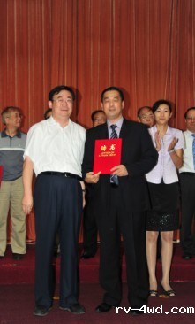 区长李爱杰向商会秘书长伍柳江颁发聘书