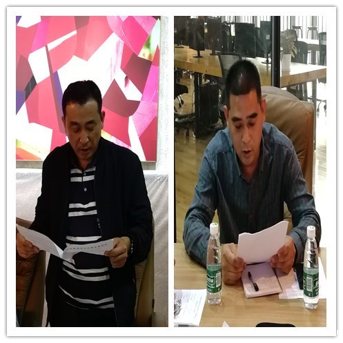 王维刚同志(左)传达换届通知,侯纪伟同志(右)宣读《选举办法》