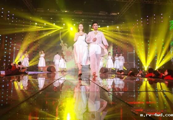 盛典上,一场10分钟的万足金婚纱秀令人惊艳赞叹,赛菲尔珠宝历年共计18套万足金婚纱齐亮相。伴随着悦动的音符,18位男女模特身披华彩熠熠的绝美婚纱及男士唐装结婚礼服,在如梦似幻的灯光中缓缓入场,将全场气氛点燃。