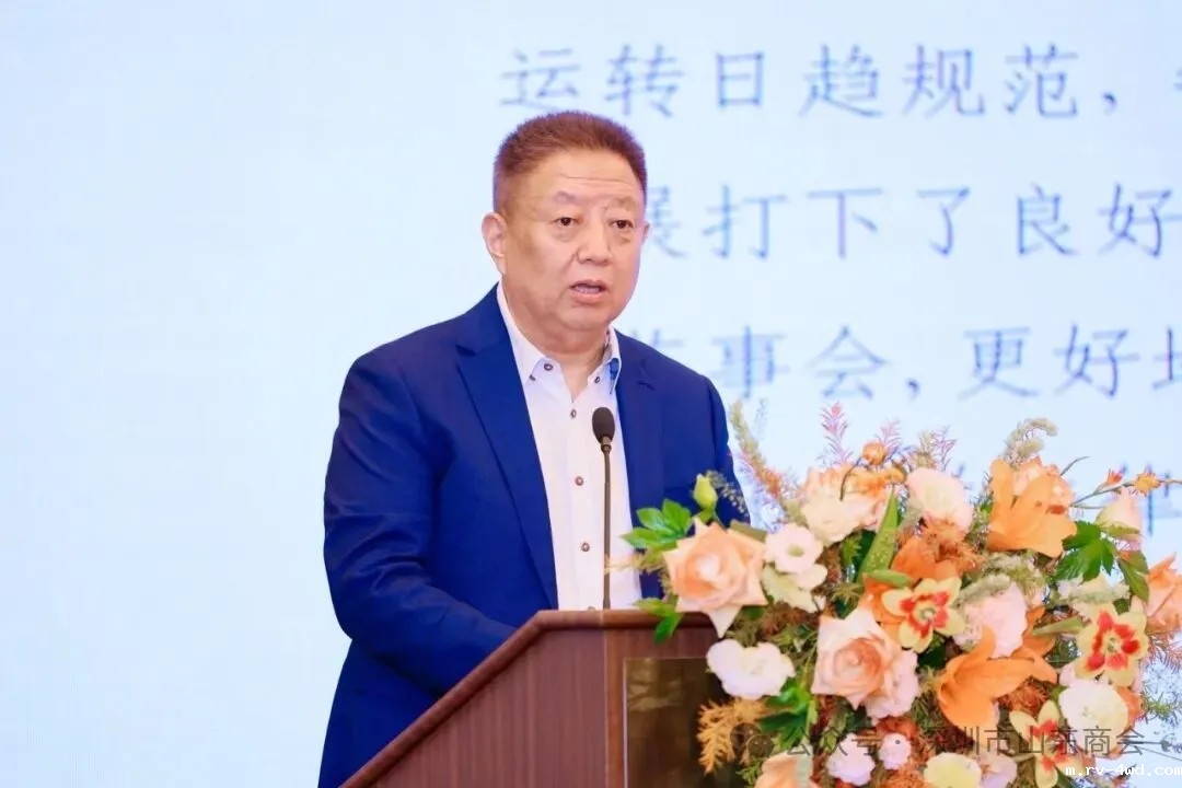 新当选会长岳智飞发表了热情洋溢的讲话。他首先对商会第三届会长王立新及会员们的付出表示感谢。面对未来,他从“三个作为、三大能力,三个重点”等方面提出了新的展望: